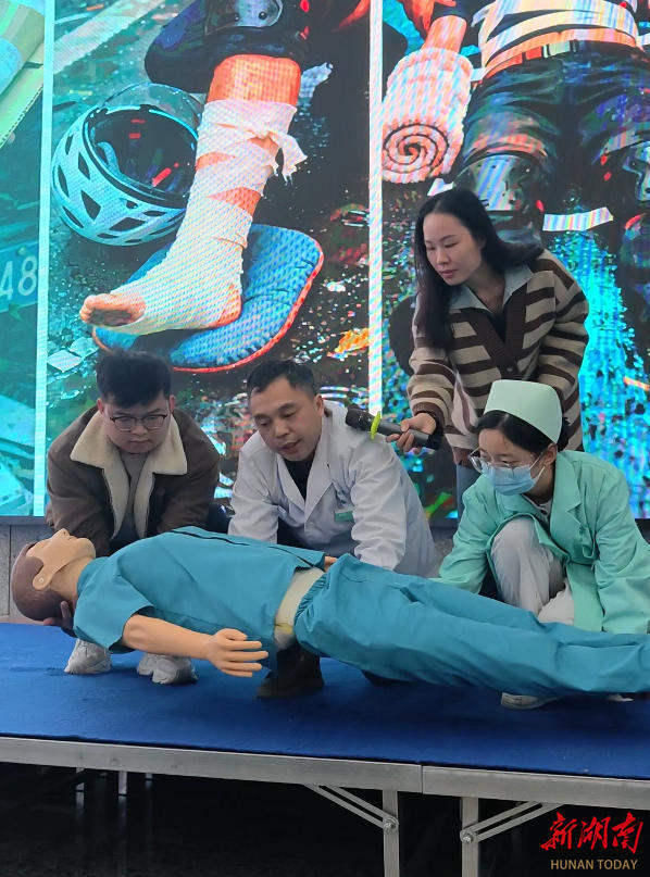 与此同时,在急救演练培训区,来自骨科专业团队的医生和护士围绕交通事故等“奔跑者”易发、高发的工伤事故类型,开展有针对性的急救知识普及、急救演练。