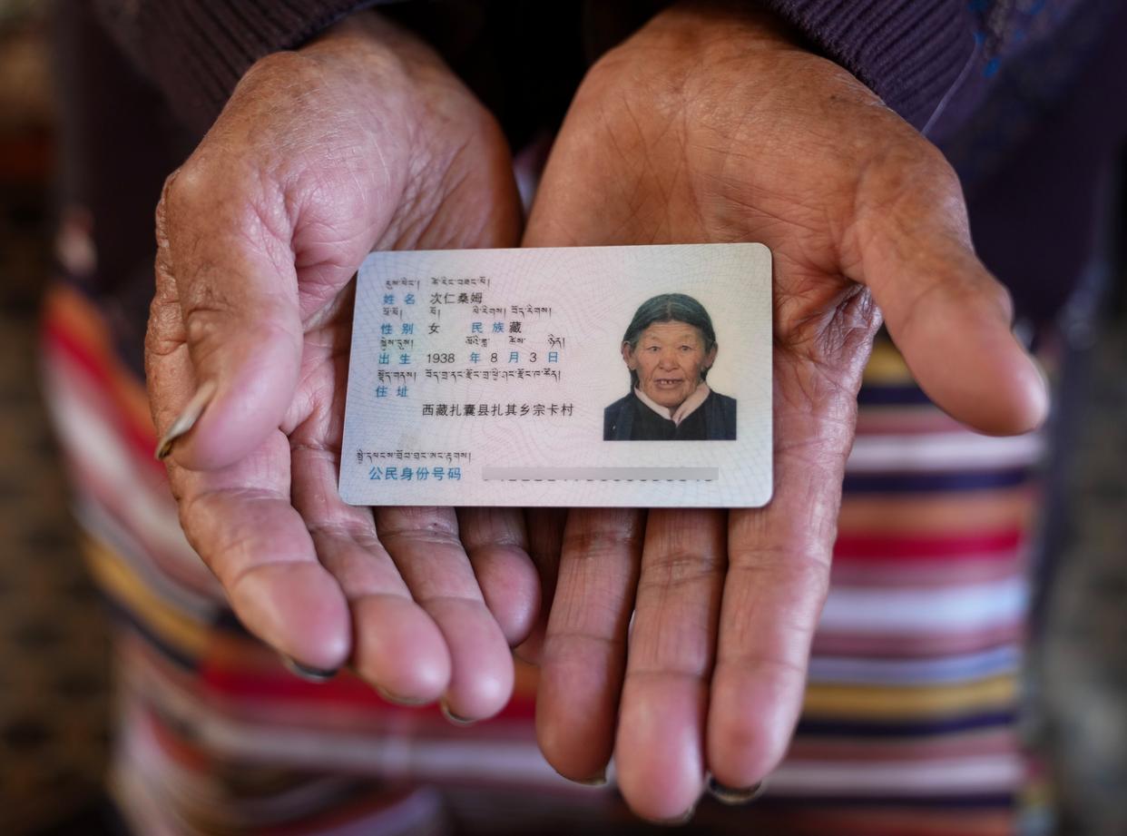 次仁桑姆的身份证(3月26日摄)。
