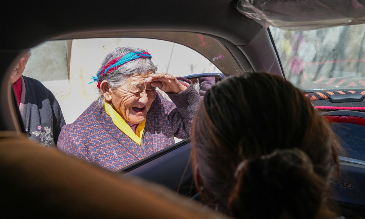 次仁桑姆叮嘱家人开车小心(3月26日摄)。