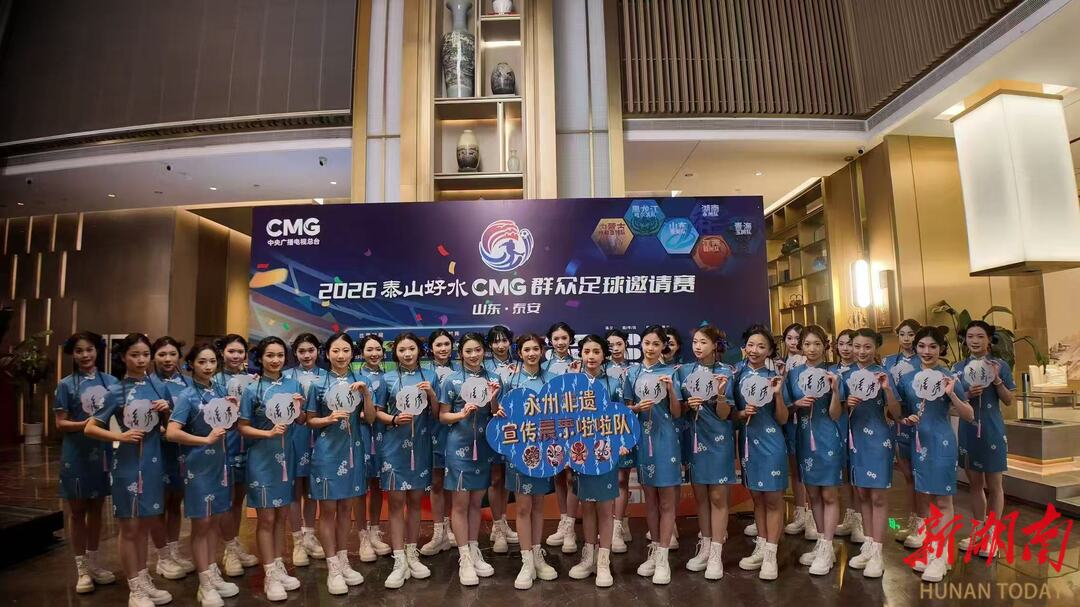 在央视直播的2026CMG群众足球邀请赛的舞台上,永州师范高等专科学校学子将秀丽的女书字符展示、刚柔并济的长鼓舞等非遗元素以及《辣妹子》音乐元素与足球赛事的热烈氛围有机融合,不仅活跃了赛事气氛,更以青春视角向全国观众展现了湖湘文化和永州非遗的深厚底蕴与当代青年的文化自信。