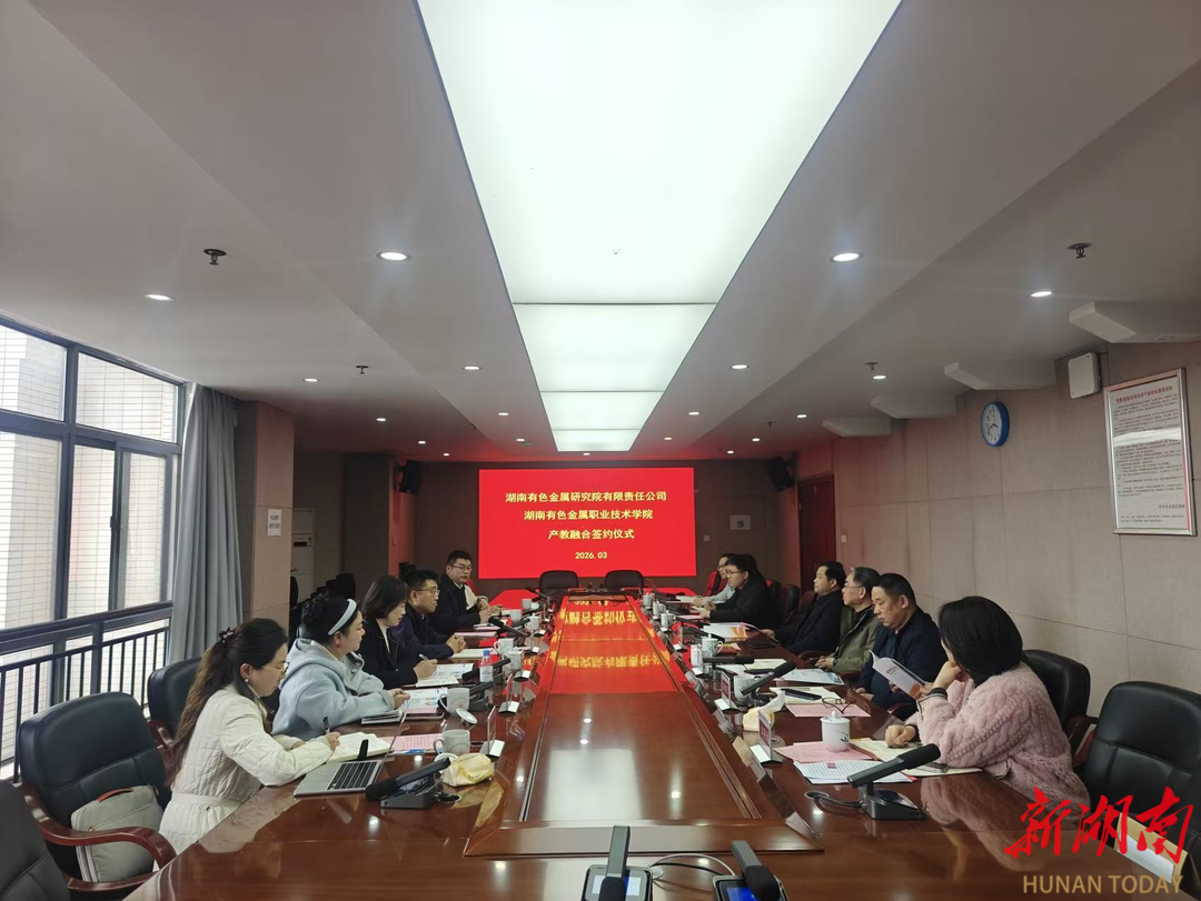 湖南日报·新湖南客户端3月31日讯(通讯员 范伊琳)近日,湖南有色金属研究院有限责任公司董事长欧阳坤、党委副书记兼总经理王玲一行赴湖南有色金属职业技术学院开展合作交流。学院党委书记许国强,党委副书记彭新宇,党委委员、副院长席安明、胡拥军及相关部门负责人参与座谈。双方围绕深化校企合作、推动产教融合进行了深入交流,并正式签署校企合作协议,标志着双方合作迈上新台阶。