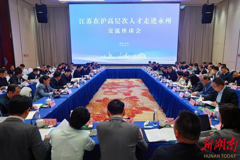 3月27日下午,江苏在沪高层次人才走进永州交流座谈会在永州冷水滩召开。座谈会上,陈爱林用历史永州、文化永州、红色永州、生态永州、开放永州5个鲜明标志介绍了永州,用区位交通优势、资源禀赋优势、综合要素成本优势、现代产业比较优势、营商环境优势5个优势推介了永州。希望双方在现代农业、文旅产业、新能源产业、战略性新材料等重点领域加强对接,深化务实合作,实现互利共赢。谢君毅表示将充分发挥桥梁纽带作用,深入借鉴江苏产业与市场优势,深耕挖掘永州交通、资源、文旅优势,深化两地常态化对接合作,推动优质项目落地见效,全力为苏永合作做好服务保障。徐华明表示希望苏永两地以此次交流为起点,抓实产业合作,推动双方在产业、园区、市场等领域合作走深走实,激活人才交流活力,吸引更多高层次人才赋能永州发展,把体育结缘的热度转化为发展共赢的实际成果。
