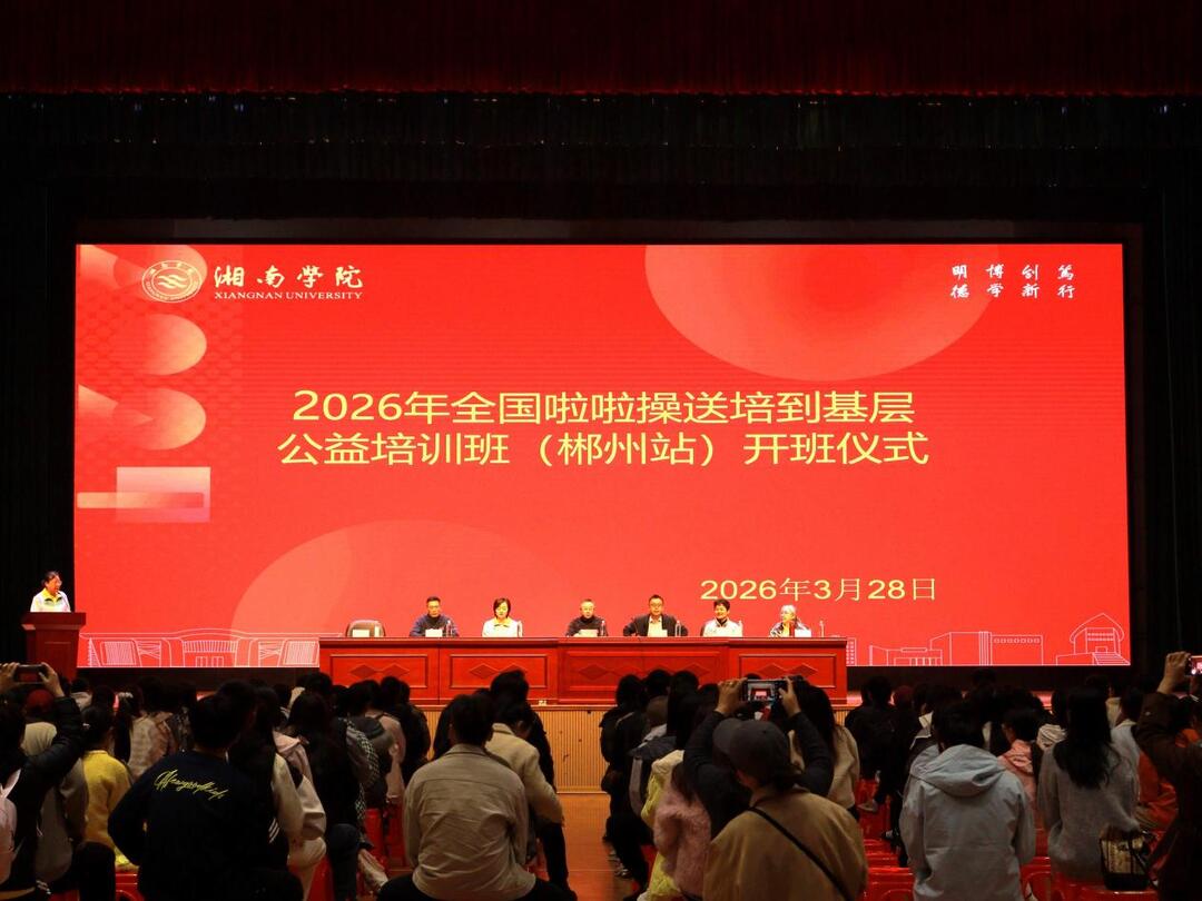 湖南日报·新湖南客户端3月31日讯(通讯员 谭惠芳 胡红芝 陈奥琳)3月28日至29日,2026年全国啦啦操社区运动会送培到基层公益培训班(郴州站)在湘南学院体育馆活力启幕。该校体育学院教师代表进行授课,学院啦啦操队学生作为志愿者积极参与活动,来自全市各区县中小学、幼儿园及体育机构的200余名体育教师、美育骨干齐聚一堂,以饱满热情投入学习。