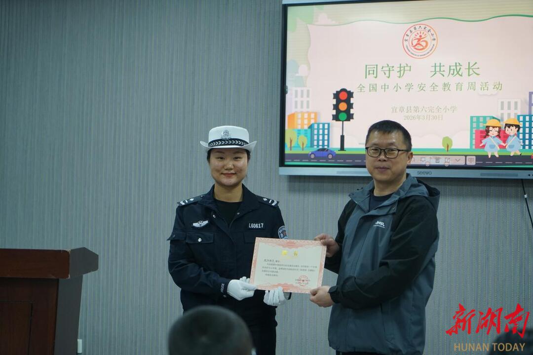 新湖南客户端3月31日讯(通讯员 范林喜)为推进第31个全国中小学安全教育日暨安全教育周工作落地,近日,宜章县第六完全小学紧扣“同守护 共成长”主题,邀请县交警大队警官欧阳雅芝开展《知危险 会避险》交通安全专题讲座,筑牢校园安全防线。