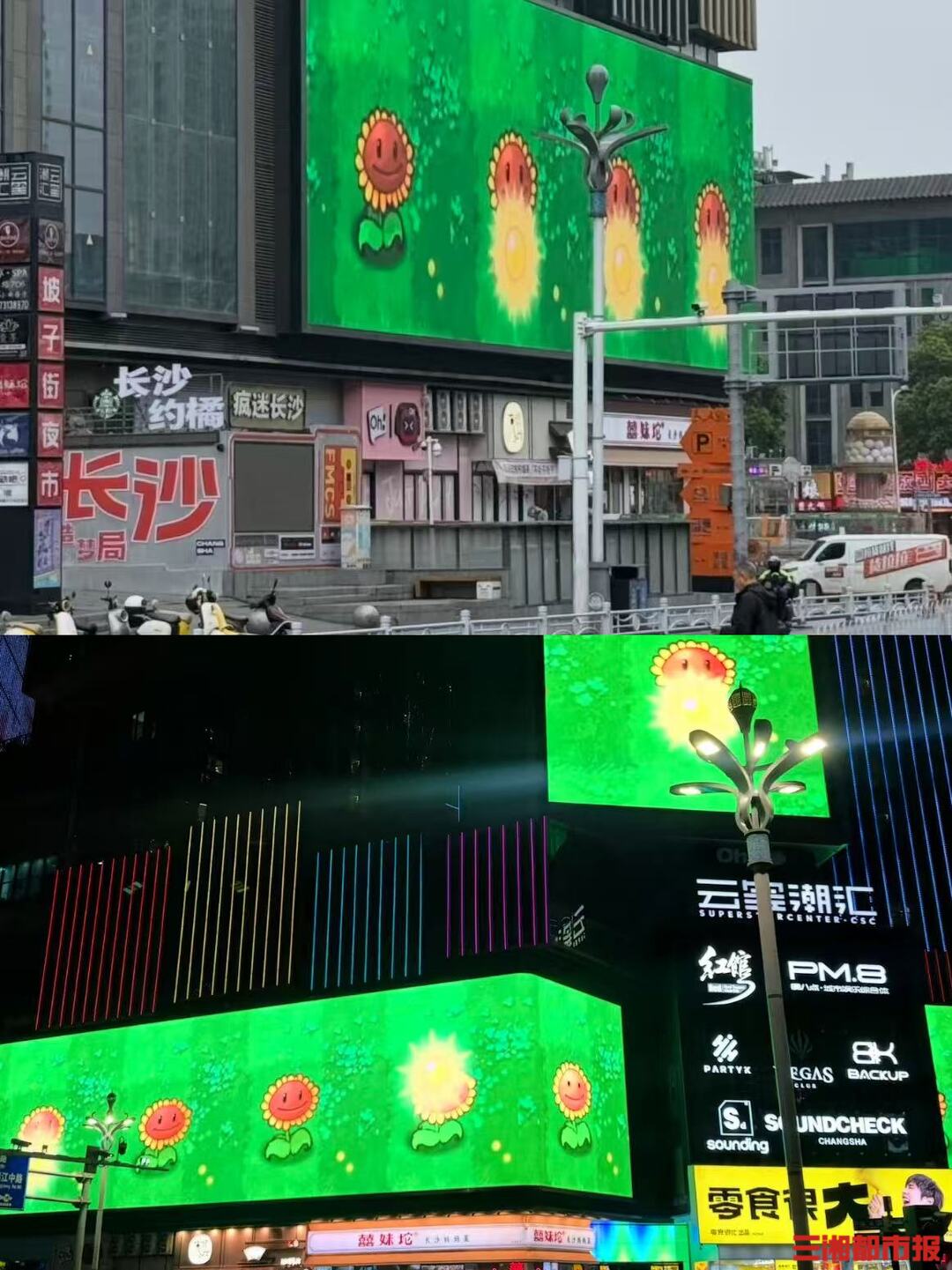 三湘都市报·新湖南客户端 3月31日讯(全媒体记者 蔡银)进入春季长沙阴雨连绵,湿冷天气持续不断,市民盼太阳盼到“望眼欲穿”。有网友外出时发现,城区一块户外大屏悄悄“整活”,循环播放游戏《植物大战僵尸》里的太阳花的画面,明亮治愈又接地气。31日,记者采访了户外大屏的负责人谭先生,他笑着说:“就想玩个梗,和大家一起等天晴。”