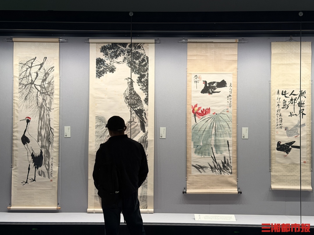 三湘都市报·新湖南客户端3月31日讯(全媒体记者 曾冠霖 通讯员 唐哲昊)3月31日,正在湖南省博物馆展出的“南北有二石:齐白石、傅抱石艺术大展”迎来开展以来首次较大规模展品轮换。此次共更换40件(套)作品,其中包括齐白石《飞瀑图》、傅抱石《二湘图》《屈原像》等平时难得一见的代表性作品,为观众提供新的观展体验,也进一步丰富了展览对于中国画现代化进程的呈现。