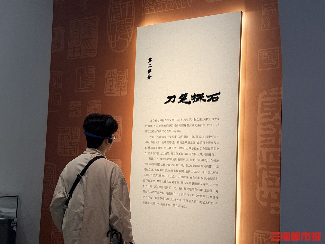 “南北有二石:齐白石、傅抱石艺术大展”自1月23日开展以来,凭借两位艺术大师同台亮相的罕见阵容,吸引了众多观众前来打卡。展览由湖南省博物馆联合南京博物院、辽宁省博物馆共同主办,共汇集215件(套)绘画、书法、篆刻、手稿等精品。