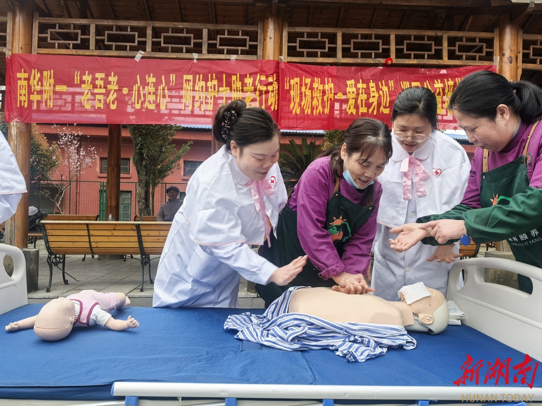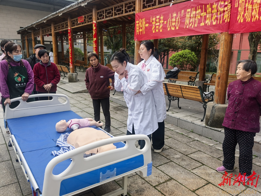 湖南日报·新湖南客户端3月31日讯(通讯员 宋霞)3月26日,南华大学附属第一医院“互联网+护理服务”组成员及南丁格尔志愿者走进衡阳市珠晖区康晖颐养中心,开展助老行动。团队以护理查房、急救技能培训、专科操作示范为核心,将三甲医院优质护理资源下沉养老一线,切实提升机构照护能力,守护长者健康安全。