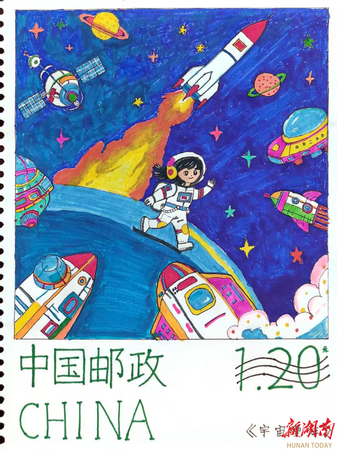 湖南日报·新湖南客户端3月31日讯(记者 张子欣 通讯员 李无我 王丽萍)3月30日,衡阳市邮政分公司与华新小学联合举行首届“邮梦未来 童绘星河”小学生邮票设计大赛颁奖仪式,对荣获一、二、三等奖的6幅作品以及获得纪念奖的作品进行奖励。其中,2307班邹佳妤同学设计的《星际美少女》问鼎一等奖。