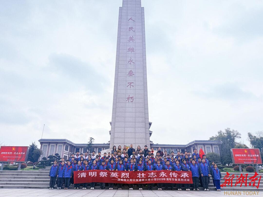新湖南客户端3月31日讯(通讯员 刘松和 江英姿)3月30日,天幕低垂,灰云如幕。湖南师大附中双语南大桥小学的党员教师、六年级全体队员、教师代表与社区代表,怀着崇敬之心,齐聚湖南省革命陵园,举行“清明祭英烈·壮志永传承”主题祭扫活动。沉默的低云为英烈寄去一份无声的哀思。