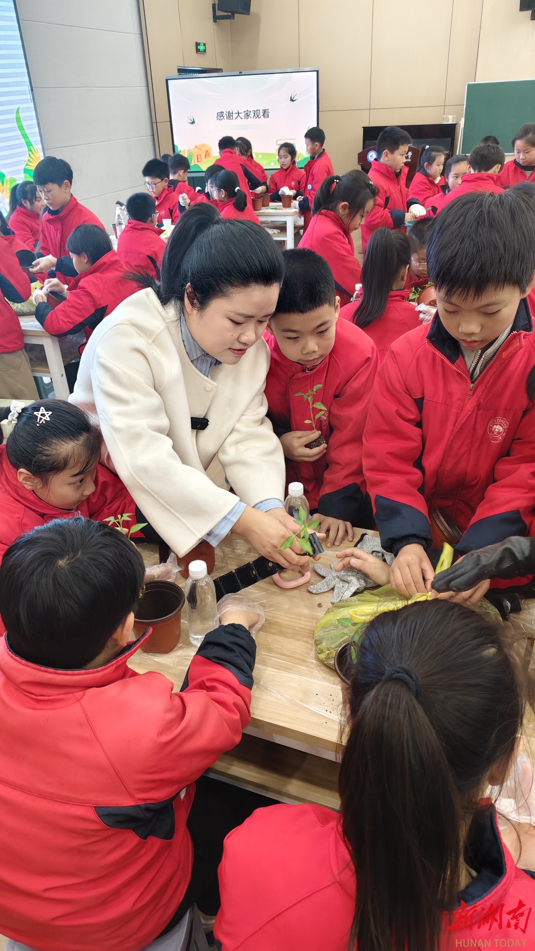 新湖南客户端3月31日讯(记者 王宇蓝)三月,正是春耕生产的时节。今天下午,由长沙市农业农村局、长沙市农业科学研究院联合打造的“农农体验营之春种一粒种”农业科普活动,走进湘江新区博才洋湖小学。长沙市农业科学研究院农艺师杨金辉、宁佐洋带来趣味科普课《蔬菜的奇妙世界》,本期活动通过长沙农业农村视频号全程直播,四年级13个班级同步在线观看,让农业科普与劳动实践在校园落地生根。