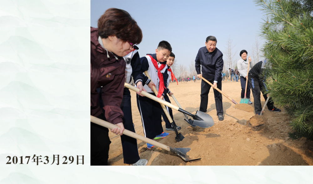 率先垂范、身体力行。此后13个春天,习近平总书记坚持同干部群众一起参加义务植树活动。永定河畔的滨水绿廊,城市副中心的绿心公园,产业疏解后改造的开放绿地,环境整治后打造的生态空间,都曾见证总书记躬身植绿的身影。