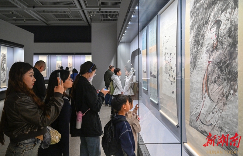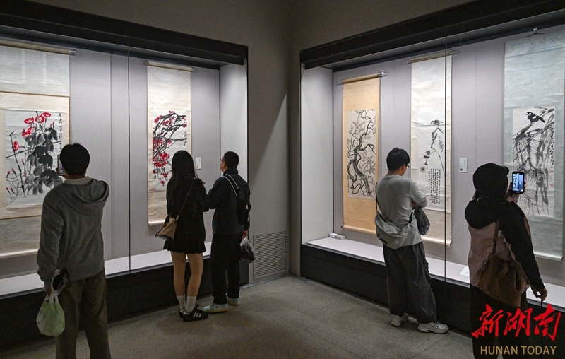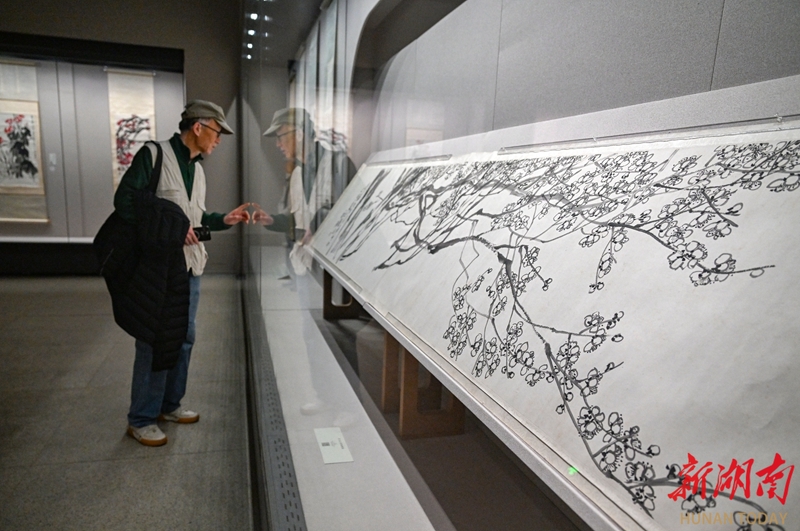 3月31日,湖南省博物馆,市民和游客在观看“南北有二石:齐白石、傅抱石艺术大展”。当天,该展对40件(套)展品进行了轮换。更新的展品延续了展览的学术脉络,持续展现中国画现代化进程。展览自1月开展以来深受欢迎,吸引众多艺术爱好者参观。 湖南日报全媒体记者 郭立亮 龙文泱 摄影报道