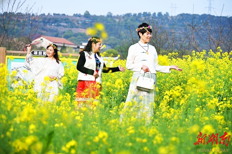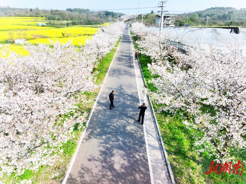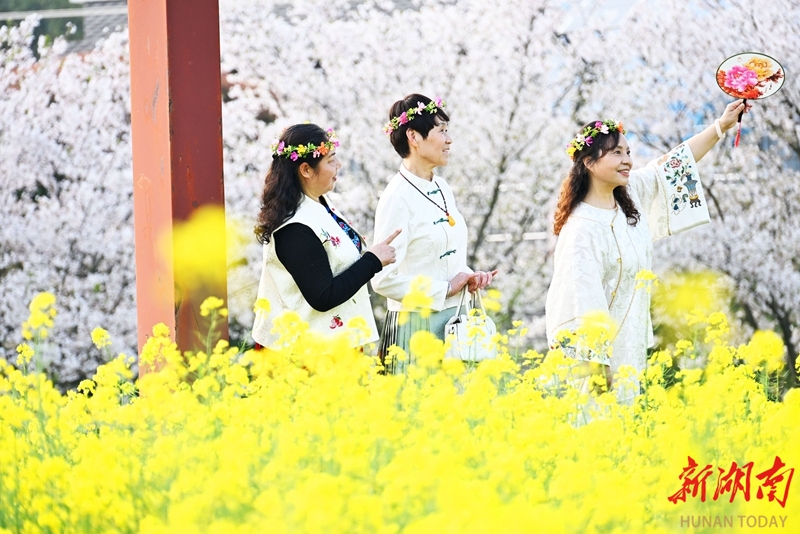 3月31日,津市市金鱼岭街道大关山村迎来不少赏花游客。时下,当地樱花大道与油菜花田正值最佳观赏期,吸引众多游客前来打卡。柏依朴 摄(湖南图片库)
