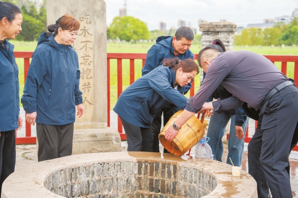 3月30日,江西省瑞金市红井景区,“寻亲代表团”成员在采集“红井水”。