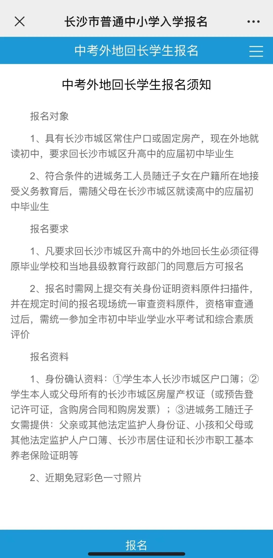 3.了解中考外地回长生报名须知。