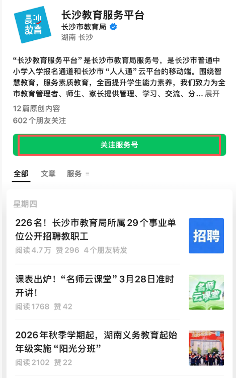 3. 微信公众号:长沙教育服务平台