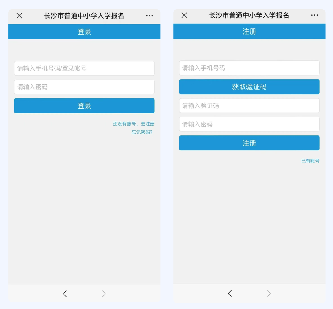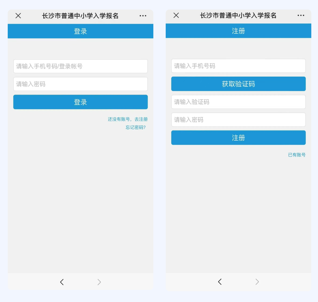 点击下方“注册”,输入家庭常用手机号码,接收验证码后按步骤填写完成注册,注意密码规则要求为:长度在8-18位之间,并且要包含至少1位大写字母、1位小写字母、1位数字、1位特殊字符。