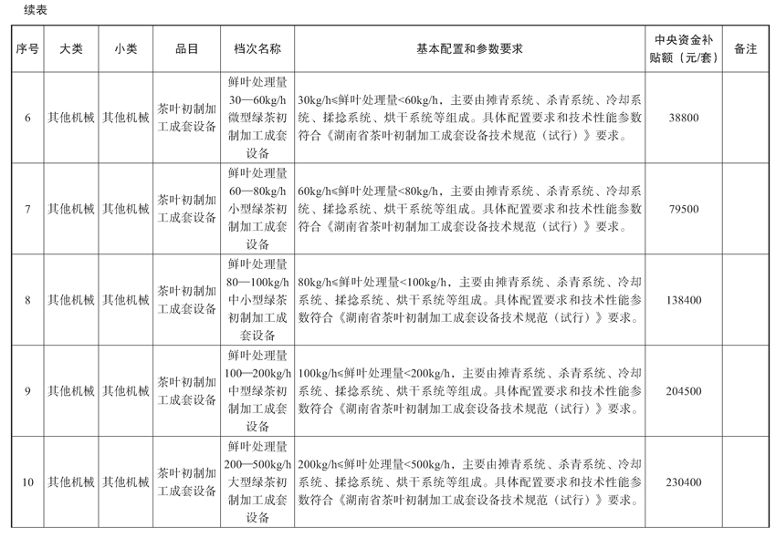 湖南省稻谷烘干中心、茶叶初制加工成套设施装备购置与应用补贴试点实施方案