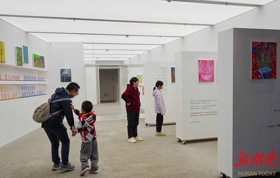On March 29, residents watched the "Motorcycle and Firefly Blooms—Liu Nian & Liu Yunfan: A Father-Son Poetry and Painting Exhibition" at the Hunan Art Museum. Using "motorcycles" and "firefly blooms" as thematic motifs, the exhibition offers visitors an immersive artistic experience through the cross-disciplinary fusion of music, poetry, and painting. (Photo/Xu Xing, Hunan Daily)