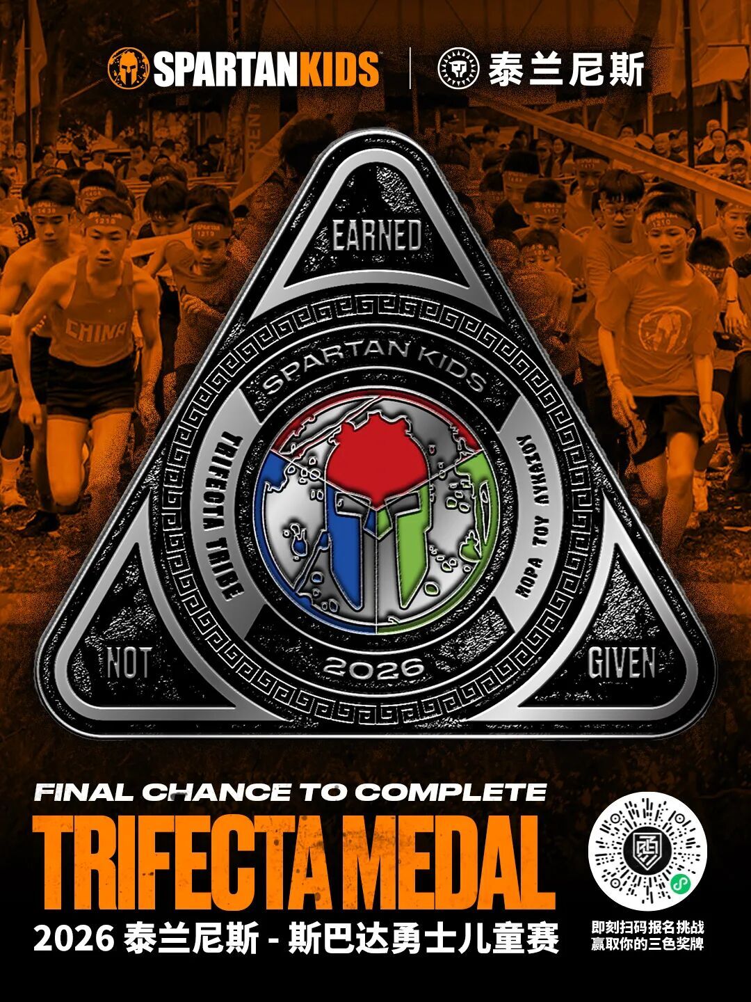 2026泰兰尼斯-斯巴达勇士儿童赛完赛荣誉体系概念重构!每完成一场儿童赛赛事都将获得专属「完赛奖牌&完赛T恤」,为你的勇气荣誉征程加冕。