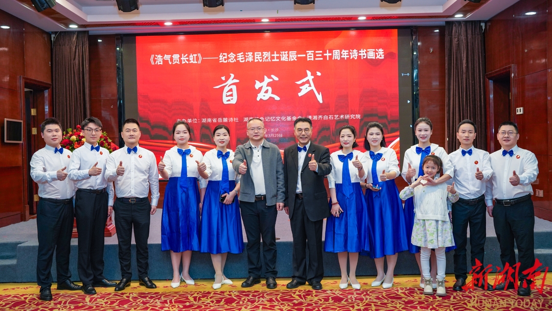 这是一个值得铭刻于心的日子。清明将至,天清气朗,惠风和畅,万物昭苏。红色的热土上,群贤毕至,少长咸集,毛泽民烈士的后人,从北京、从莫斯科远道而来,湖南省市领导、老同志、诗书画获奖作者、文学艺术爱好者代表二百余人齐聚一堂,共同见证《浩气贯长虹》纪念毛泽民烈士诞辰一百三十周年诗词书画选的首发仪式。以书为媒、以歌咏怀、以诗言志,深切缅怀烈士丰功伟绩,传承红色基因,凝聚奋进力量。