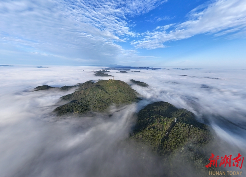 4月1日清晨,桂东县县城,云雾缭绕,美不胜收。当天,随着雨后放晴,多地出现云海美景。邓仁湘 摄 (湖南图片库)