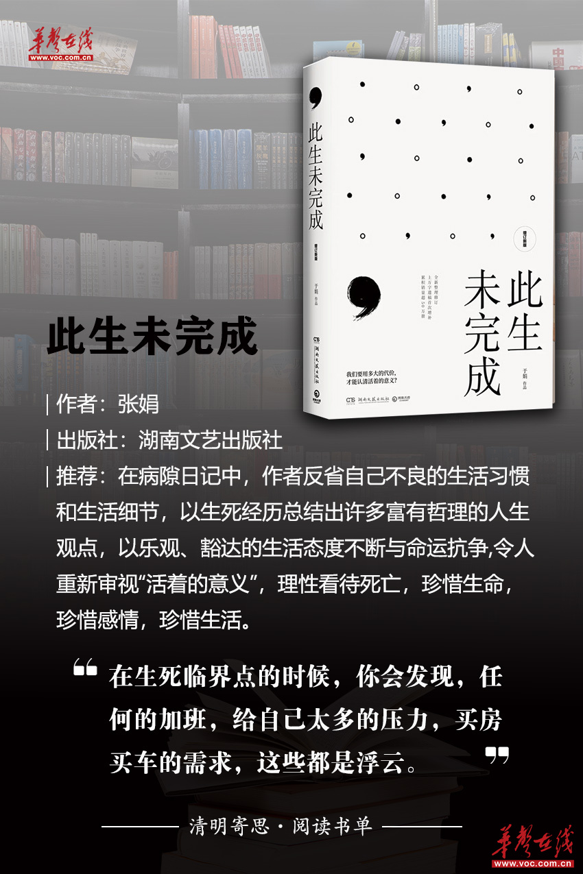 当生命终将归于天地,我们如何直面死亡的重量?当记忆被时间冲刷褪色,我们又如何抵抗遗忘的侵蚀?记者精选了一批由湖南本土出版社出版的书籍,整理出这份“清明主题书单”,这个假期,让我们透过书籍,去窥见人类如何以记忆为舟、以思念为桨,泅渡永恒的生死之河。