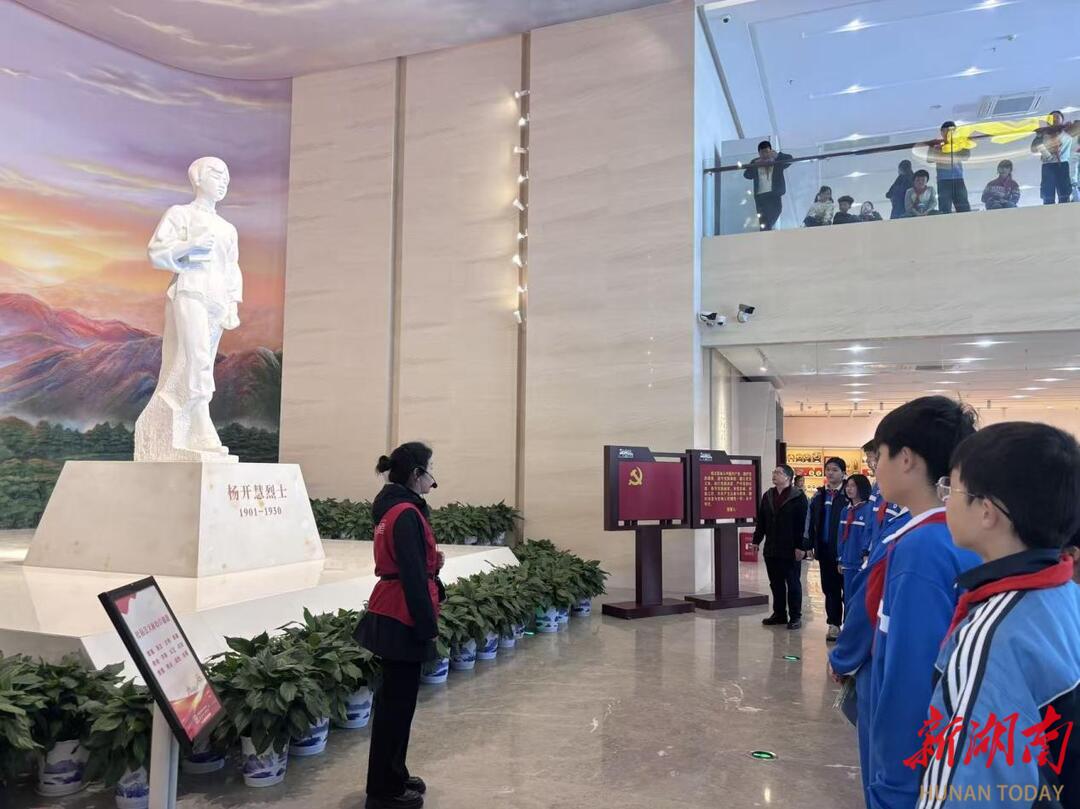 当天下午,祭扫活动持续深化,学校分两路同步开展红色教育实践活动。思政教研组全体教师带领40余名学生前往杨开慧烈士故居及墓园,怀着崇敬之心敬献花圈、肃立默哀,追忆“骄杨”坚守信仰、勇赴国难的革命历程,感悟革命先辈的崇高精神境界。现场,思政教师以红色旧址为鲜活课堂,结合刘守玟等校友英烈事迹开展生动教学,将红色故事与思政教育深度融合,打破课堂与现场的壁垒,推动思政教育从书本走向实景、从理论走进心灵,让学生在沉浸式体验中感悟信仰力量、汲取奋进动力。