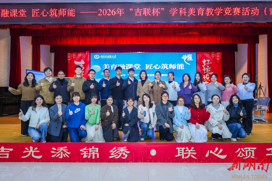 新湖南客户端4月3日讯(通讯员 谢静)为践行课程美育理念,推动美育与全学科深度融合,探索AI赋能课堂教学新路径,构建高质量、有美感、有温度的生命化课堂,长沙市雨花区吉联小学于4月1日、2日开展了2026年“吉联杯”学科美育教学竞赛。本次竞赛分四场进行,涵盖语文、数学、英语、体育、音乐、美术等全学科,设置骨干示范场与青年竞赛场,全校教师同台竞技,以20分钟有生片段课的形式,呈现了一场场兼具学科深度与审美温度的教学盛宴。