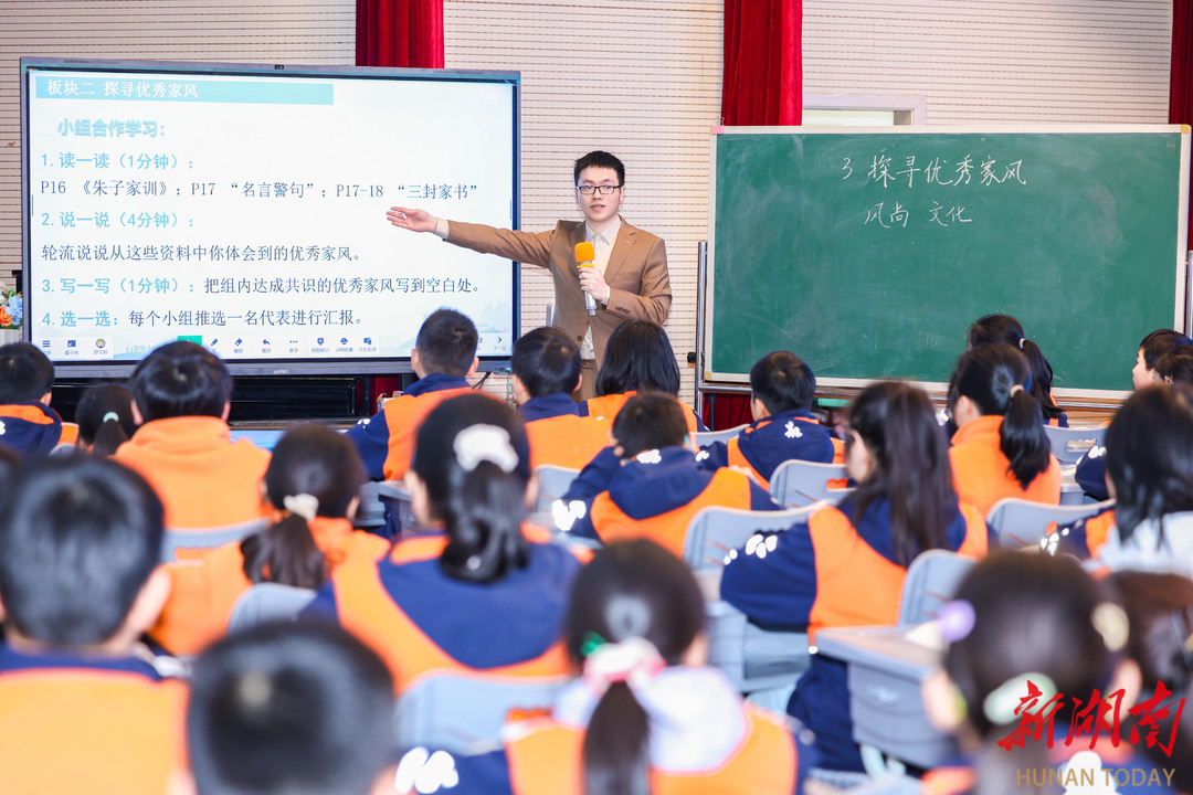 语文课堂诗意流淌,任律坤老师在古诗教学中渗透色彩美育,廖敏老师带领学生在《荷花》的诵读中感受荷塘清新之美,王艳老师深挖人物形象让文字有了温度。数学课堂智美共生,石琳老师借《指针的奥秘》让学生感悟计时工具的设计之美,刘奕麟老师结合建筑艺术探究三角形稳定性,吴接官老师以找次品培养学生推理与优化思维。英语与道法课堂特色鲜明,罗文婷老师借助AI赋能让美育融入语言学习,廖幸老师带领学生探寻家训家规,体悟家风中的传统美德之美。