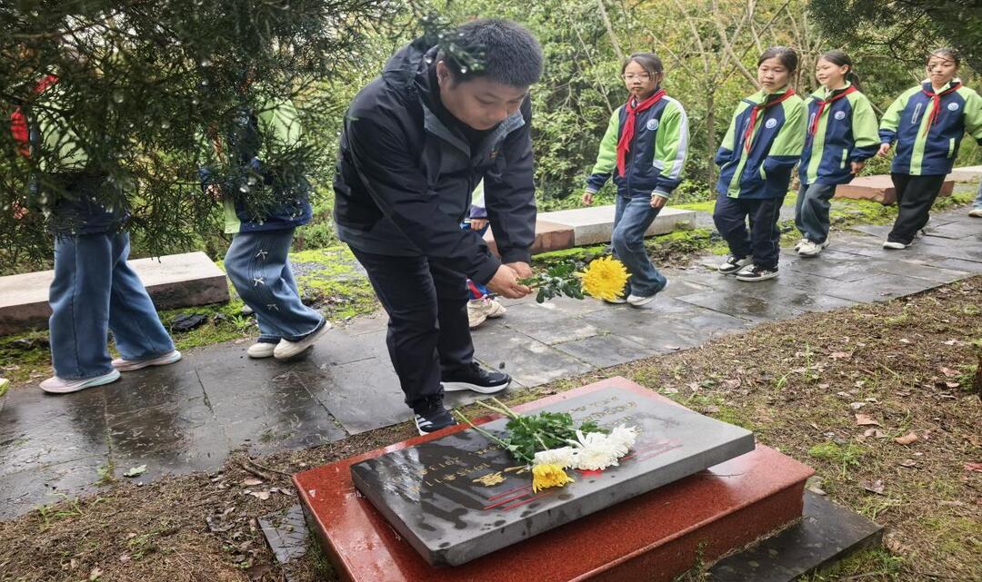 新湖南客户端4月3日讯(通讯员 唐帆 刘娟)为深切缅怀革命先烈,传承红色基因,厚植爱国主义情怀,4月3日,泸溪县武溪镇第二小学开展“缅怀先烈志,共铸中华魂”主题扫墓活动,以一堂生动的“行走的思政课”,引导少先队员铭记历史、勇担使命 。