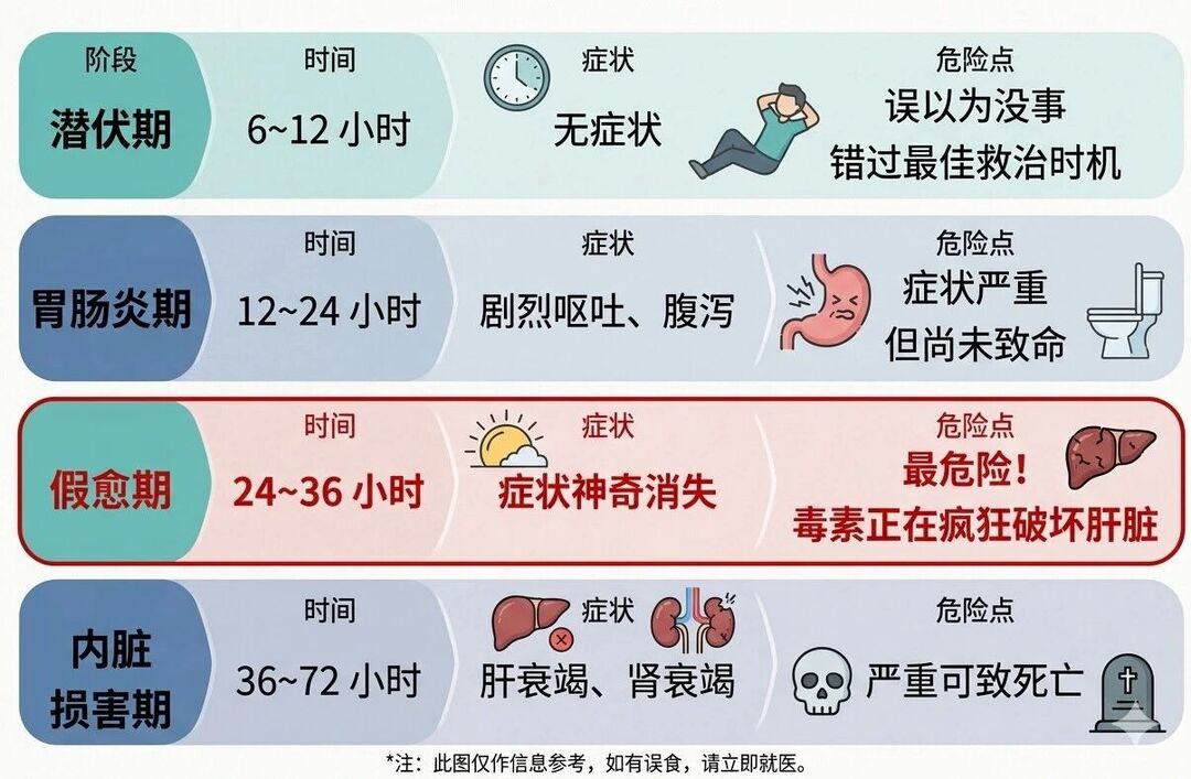 • 警惕“假愈期”:部分剧毒蘑菇(如鹅膏菌)中毒后,初期症状可能缓解,看似“好转”,实则毒素正在严重损害肝肾。切勿因症状减轻而延误治疗!