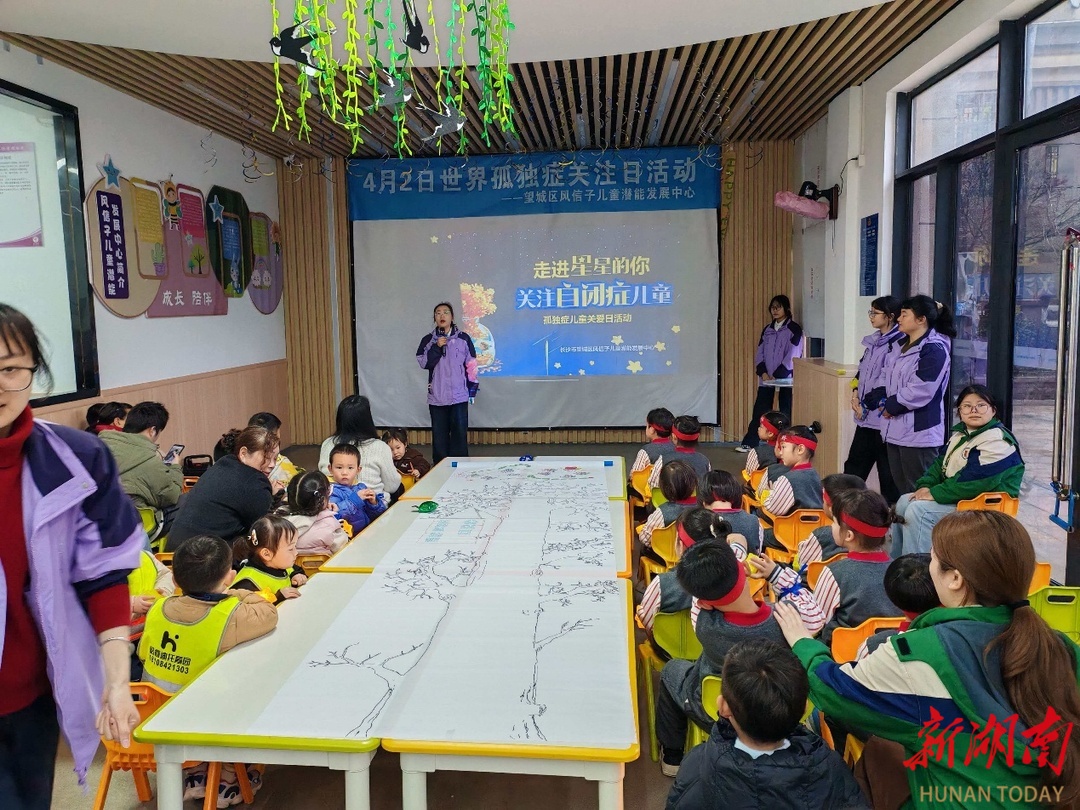 新湖南客户端4月3日讯(通讯员 王艳红)2026年的4月2日,第19个世界孤独症关注日,风信子儿童潜能发展中心“星光闪烁・智向未来”主题公益活动温暖启幕。望城区残联陈部长、金甲社区工作人员、谷山府幼儿园师生、爱心志愿者及全体师生家长齐聚现场,用爱守护“星星的孩子”。