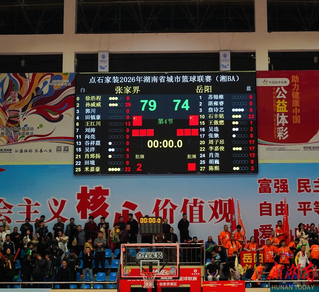 湖南日报·新湖南客户端4月3日讯(记者 张颖琳 杜立)今天,“湘BA”常规赛第二轮,张家界队和岳阳队的比赛在张家界桑植县贺龙体育馆打响。双方交替领先、互不相让,为观众奉上了一场酣畅淋漓的对决,最终张家界队以79:74反超拿下胜利。