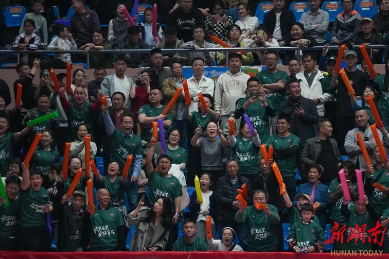 4月3日晚,2026湖南省城市篮球联赛(“湘BA”)第二轮在桑植县贺龙体育馆举行。张家界队(白)主场对阵岳阳队(蓝),经过激烈比拼,最终以 79:74 险胜对手,斩获两连胜。向韬 摄(湖南图片库)