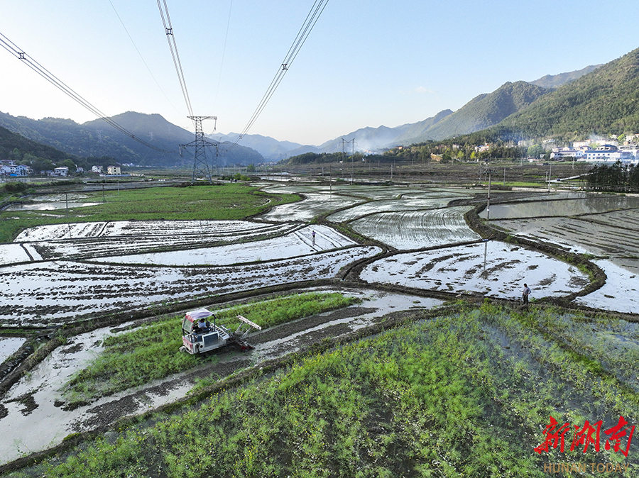 4月5日,双峰县荷叶镇清泉村,农民驾驶农机平整水田准备插秧。清明时节,当地农民抢抓农时开展春耕生产,为全年粮食丰收奠定基础。 李建新 摄(湖南图片库)