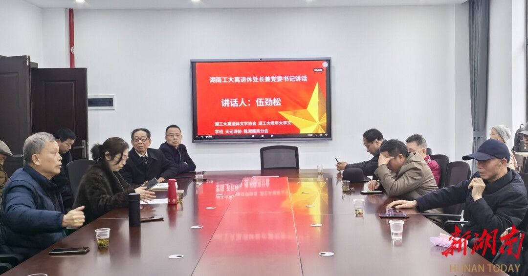 众人围坐一堂,以诗会友,畅叙情谊。工大文学协会会员、老年大学文学班学员与株洲儒商分会、天元诗协的诗友们倾心交流。发言的言语间,皆是对湖南工业大学的赞叹,对世包盛会的期盼,对湖工大离退处工作的赞誉。老年大学文学班彭合成教授对此次采风活动作了精彩点评,离退休工作处党委书记、处长伍劲松,副处长杨欣颖也依次发言,言辞恳切,情意真挚,为这场春日采风画上了温暖圆满的句号。