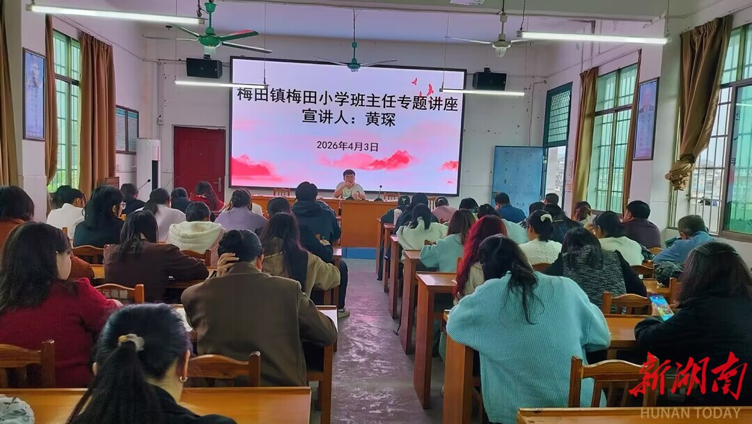 新湖南客户端4月7日讯(通讯员 李强 黄琛)为进一步提升班主任专业素养和班级管理能力,破解育人工作中的难点问题,建设高素质班主任队伍,4月3日中午12:30,湖南省郴州市宜章县梅田镇梅田小学在综合楼会议室开展2026年上期班主任专题培训会,会议由政教主任黄琛担任主讲人。