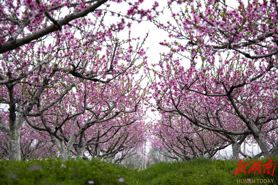 在益阳市桃江县灰山港镇杨家湾村的洞宾果园里,连续数年举办的桃花旅游美食节吸引着万千游客。在活动的浓厚氛围里,游客们穿梭于花海,拍照、品茶、尝美食,欢声笑语缀满林间。不远处,崇德文化广场的篝火晚会盛情地点燃了山村的夜晚。