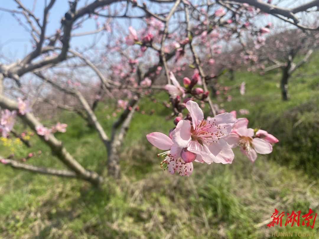 洞宾果园里盛开着的桃花。蔡澜山 摄
