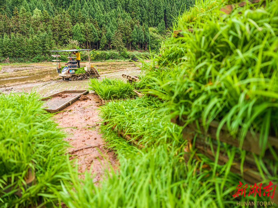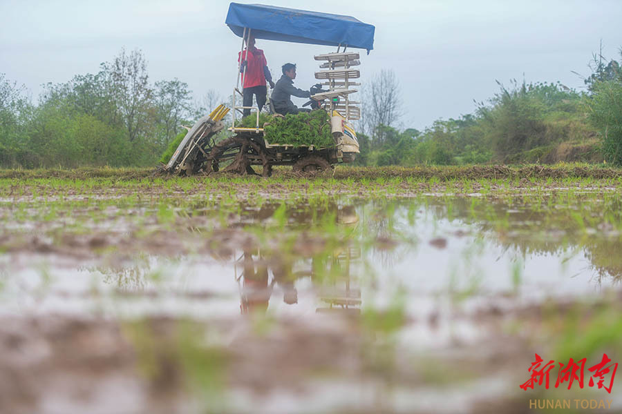 4月7日,嘉禾县坦坪镇汪洋塘村,种植户驾驶农机在田间机插早稻。当前正值春耕春管的关键时期,当地农民抢抓农时推进农业生产,田间一派繁忙景象。 黄春涛 摄(湖南图片库)