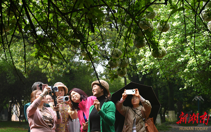 4月7日,长沙紫凤公园春色正好。木绣球拥簇枝头,莹润如玉;琼花清雅素白,灵动如蝶。游人信步其间,尽赏这份独属于春日的温柔与雅致。 湖南日报全媒体记者 田超 摄