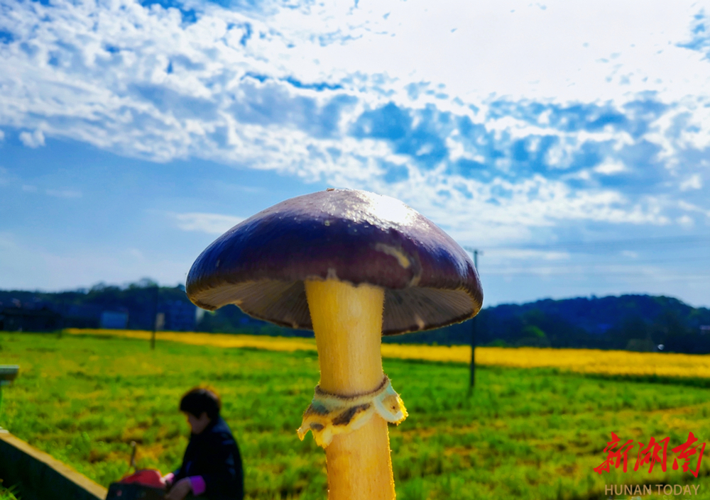 陈嘉骏介绍,这组照片, 由他4月1日在湘潭县河口镇卓江村千亩稻菇轮作示范田拍摄。图片中,乡村蓝天美景与菌菇(赤松茸)丰收盛景相映成趣,既展示生态循环发展之美,又呼吁群众践行秸秆禁烧、守护绿水青山。他还希望借此拓宽赤松茸销路,赋能乡村增收。