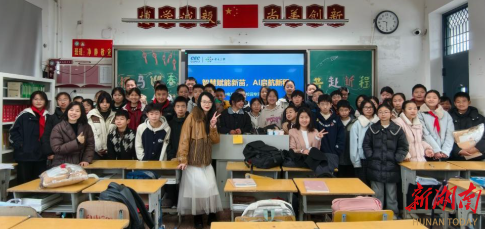 3月4日,中电工业互联网有限公司以党团共建形式,走进长沙望城区白箬铺镇白箬中学,举办“智慧赋能新苗 AI启航新程”科普进校园专项志愿活动。本次活动是中电互联自2025年启动“智慧赋能”科普进校园系列志愿行动的持续深化,聚焦AI智能前沿科技,创新采用“知识科普+沉浸式互动”模式,为在校学生带来一堂内容丰富、形式新颖的科普实践课。
