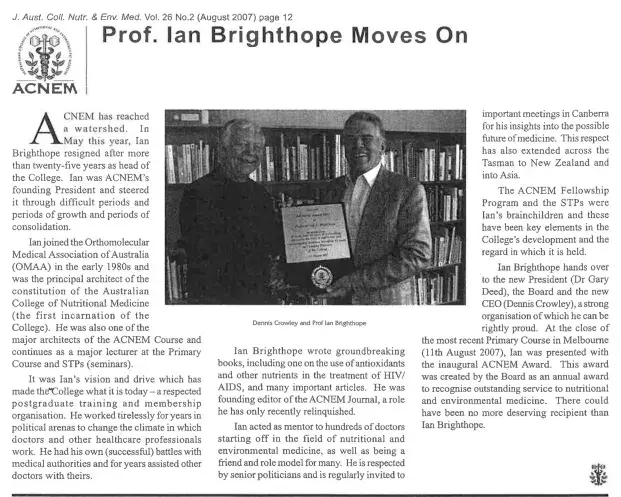 △伊恩博士获得澳洲“医学保健终身成就奖”。