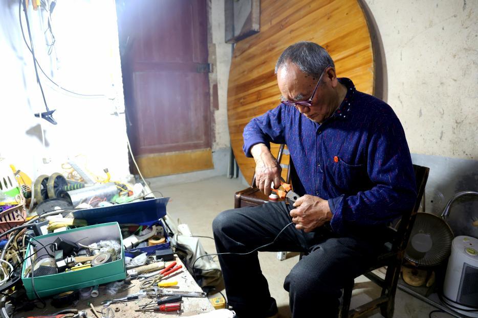 前阵子有人送来个新式电风扇,摇头的电机坏了,他蹲在台阶上拆了装、装了拆,折腾三天终于修好,现在搁在窗户底下等着主人来拿。有人问他图什么,他举着刚补好的木桶笑,木头纹理在他粗糙的手掌里纹路清晰:“能帮大伙儿做点力所能及的事,这日子就没白过。”