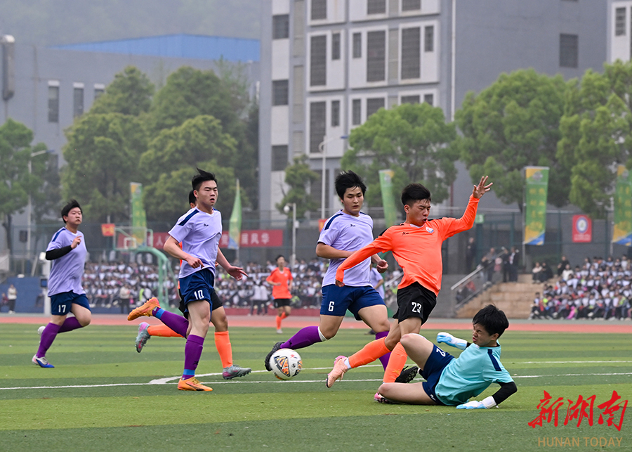 4月8日,2026年“湘中黑牛杯”娄底市青少年U系列足球联赛在娄底一中开幕。本届“校超”以“绿茵逐梦,激扬青春”为主题,设U8至U18五个组别,覆盖全市六大赛区,计划吸引超过150所中小学参赛,实现小学到高中全学段覆盖。计划吸引全市150所以上中小学参赛。图为揭幕战中,涟钢中学U18男队以3:0战胜娄底六中U18男队。刘新山 摄(湖南图片库)