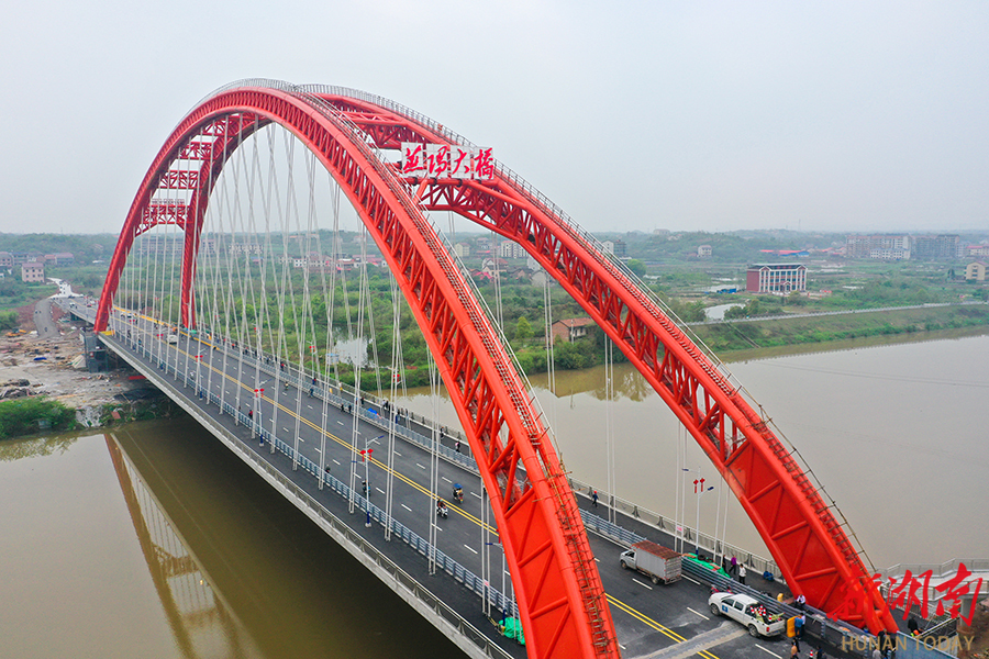 4月8日,衡阳县蒸阳大桥建成通车试运营。该桥全长447米,主跨210米,采用大跨度中承式钢管混凝土提篮拱桥设计,蔚为壮观。大桥连接县城与英南新区,不仅有效分流了过境交通,更将成为拉动区域发展的新引擎。 刘欣荣 摄(湖南图片库)