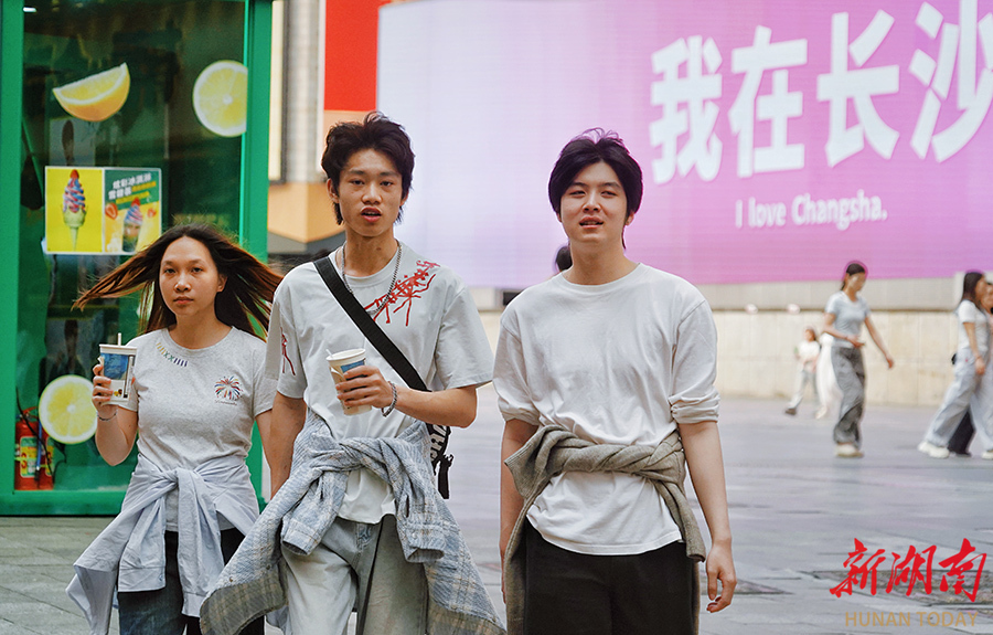 4月8日,长沙最高气温骤升至30℃,仿佛一夜入夏。在黄兴路步行街,许多市民和游客纷纷换上短袖、短裙等清凉夏装,轻装出行,提前感受夏日的热情。 湖南日报全媒体记者 徐行 摄